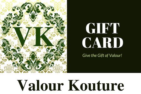 Send a VALOUR KOUTURE Gift Card INSTANTLY to anyone, anytime, anywhere! A convenient way to effortlessly #GIVE the GIFT of #VALOUR! Select a dollar amount, write a personal message, and send!